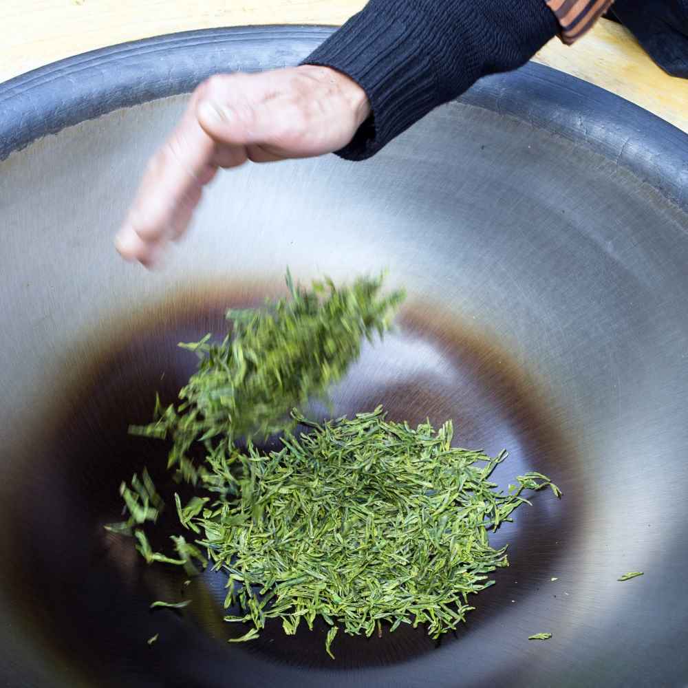In spring, the youngest tender buds are picked from the Jiu Keng cultivar and, following pressing, the organic tea leaves are pan-fried in a wok. The result is an emerald-green, fragrant flat-shaped leaf that produces a beautiful light yellow-green infusion that green tea lovers recognise as the mark of a top-quality Dragon Well.